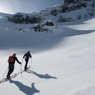 Du hast bereits Erfahrung im Skitourengehen (sicheres Aufsteigen mit Fellen und Abfahren im freien Gelände)