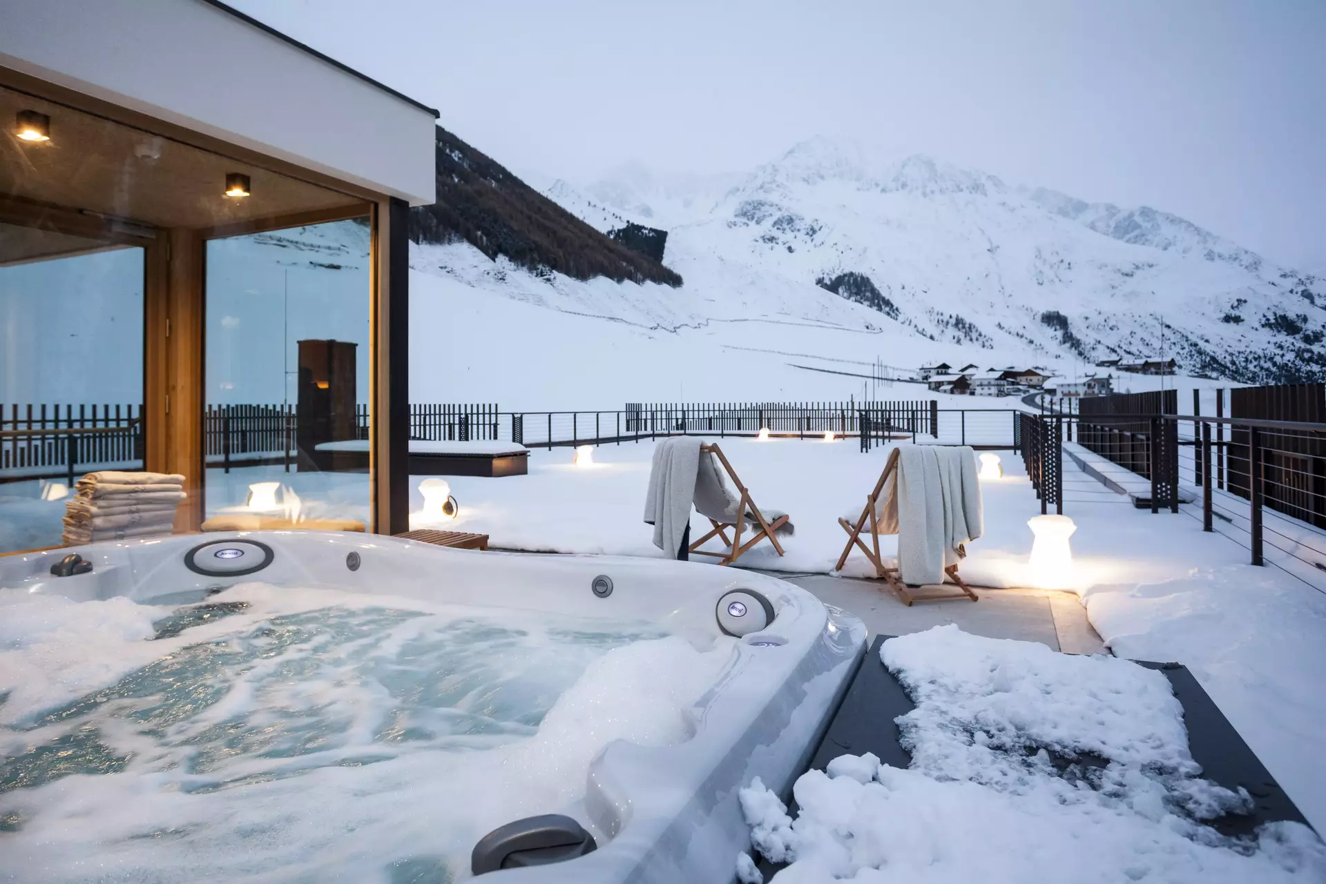 Roof-Top-Sauna mit Ruheraum, Whirlpool und Panoramablick ins Langtauferertal.